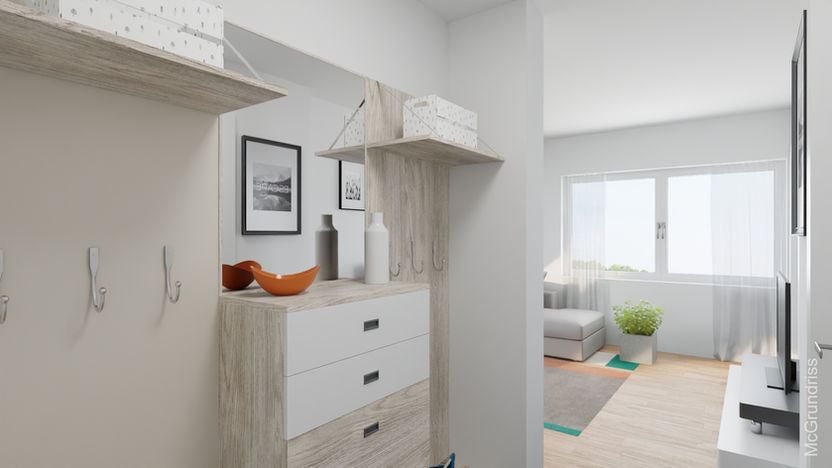 Die Wohnung selber ist im Obergeschoss und ist eine von drei Wohnungen des Hauses. Die anderen Wohnungen sollen ebenfalls nur an Pferdeliebhaber vermietet werden.